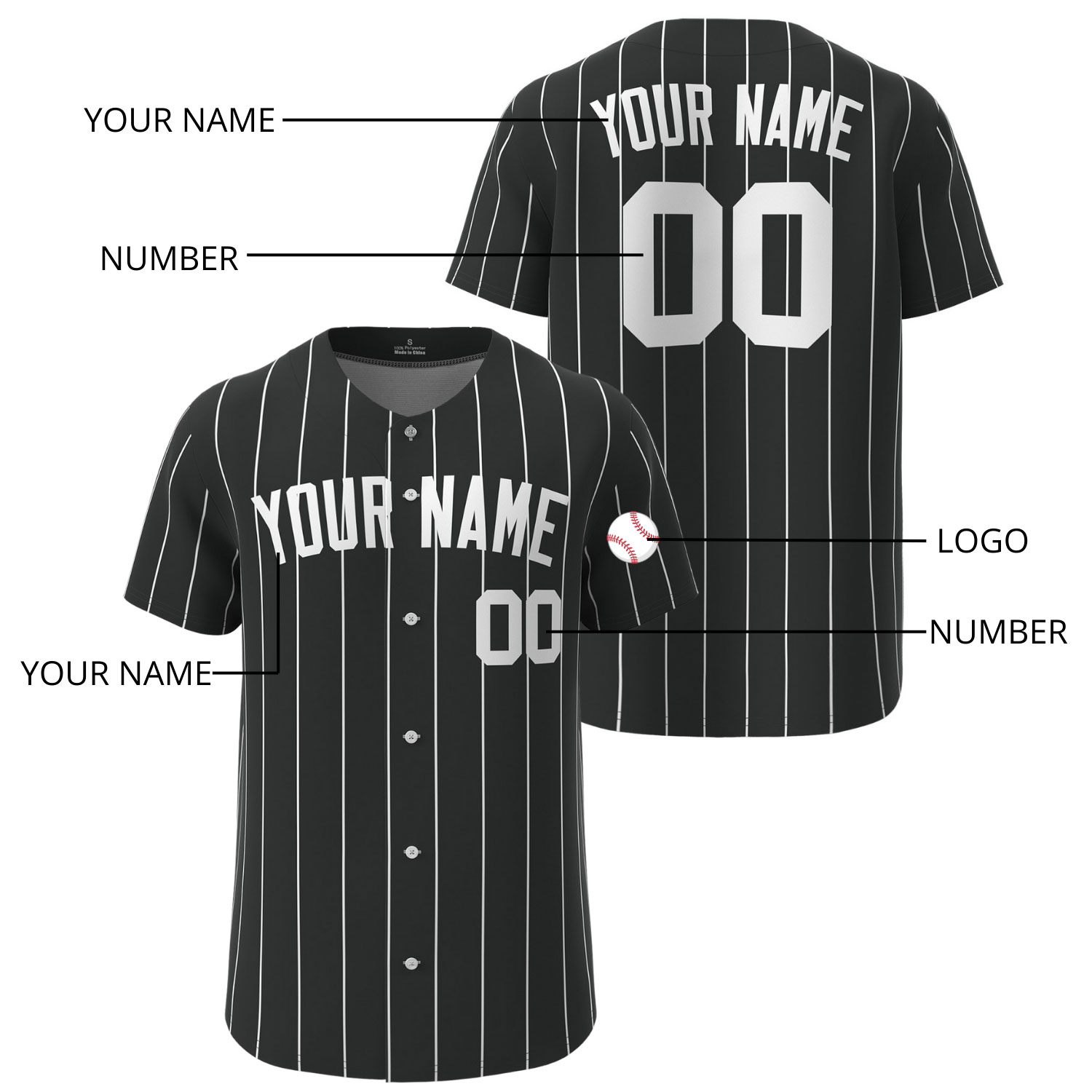 - Name: Add any name on the back and front