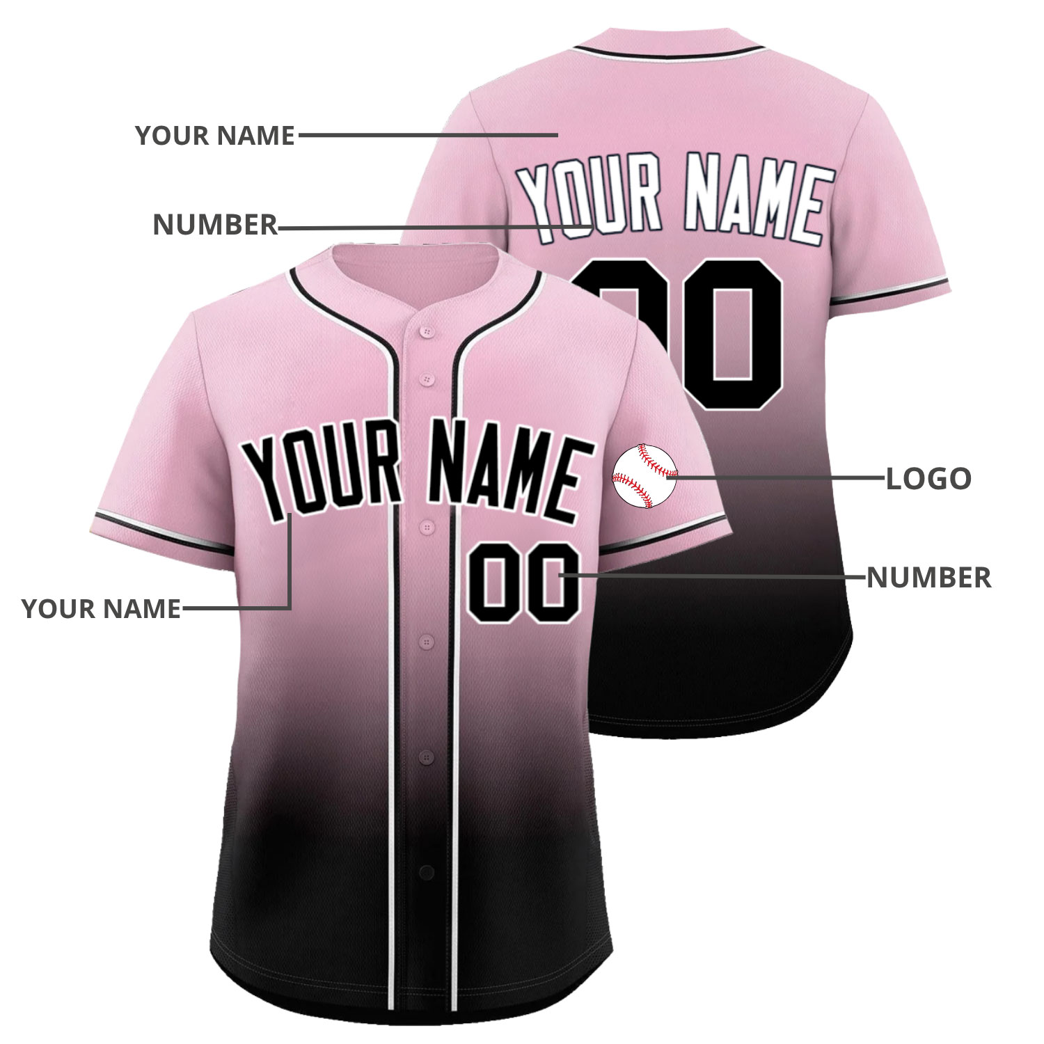 - Name: Add any name on the back and front